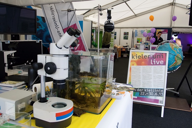 Seit drei Jahren gibt es das Angebot „Kieler Uni Live„. Vom 22. bis 30. Juni lädt die Christian-Albrechts-Universität zu Kiel zu einem bunten Programm an die Kiellinie. Im „Hörsaal“ oder im Aktions- und Ausstellungszelt gibt es für Groß und Klein reichlich Gelegenheit zum Experimentieren, Zuhören und Mitmachen.