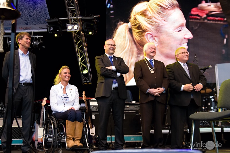 Kiels schönste und längste Woche des Jahres ist eröffnet: Mit dem weithin hörbaren Schiffshornsignal „Leinen los“ gaben die Weltklasse-Schwimmerin Kirsten Bruhn, Landtagspräsident Klaus Schlie und Ministerpräsident Torsten Albig gemeinsam mit Stadtpräsident Hans-Werner Tovar und Oberbürgermeisterin Susanne Gaschke am Sonnabend, 22. Juni, das offizielle Startzeichen für die Kieler Woche 2013. Mehr als 8.000 Zuschauerinnen und Zuschauer kamen rund um das Kieler Rathaus zusammen, um in neun Tage Hochstimmung zu starten.