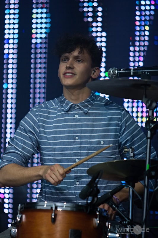 Schon beim Auftritt der Hamburger Gruppe Tonbandgerät war der Platz vor der NDR Bühne am Ostseekai gut gefüllt, auch wenn das Kieler Woche Wetter seinem Namen alle Ehre machte. 10°C und konstanter Nieselregen, der sich im Laufe des Abends zu einem ausgewachsenen Dauerregen entwickelte, konnte den Fans jedoch nicht die Laune verderben.